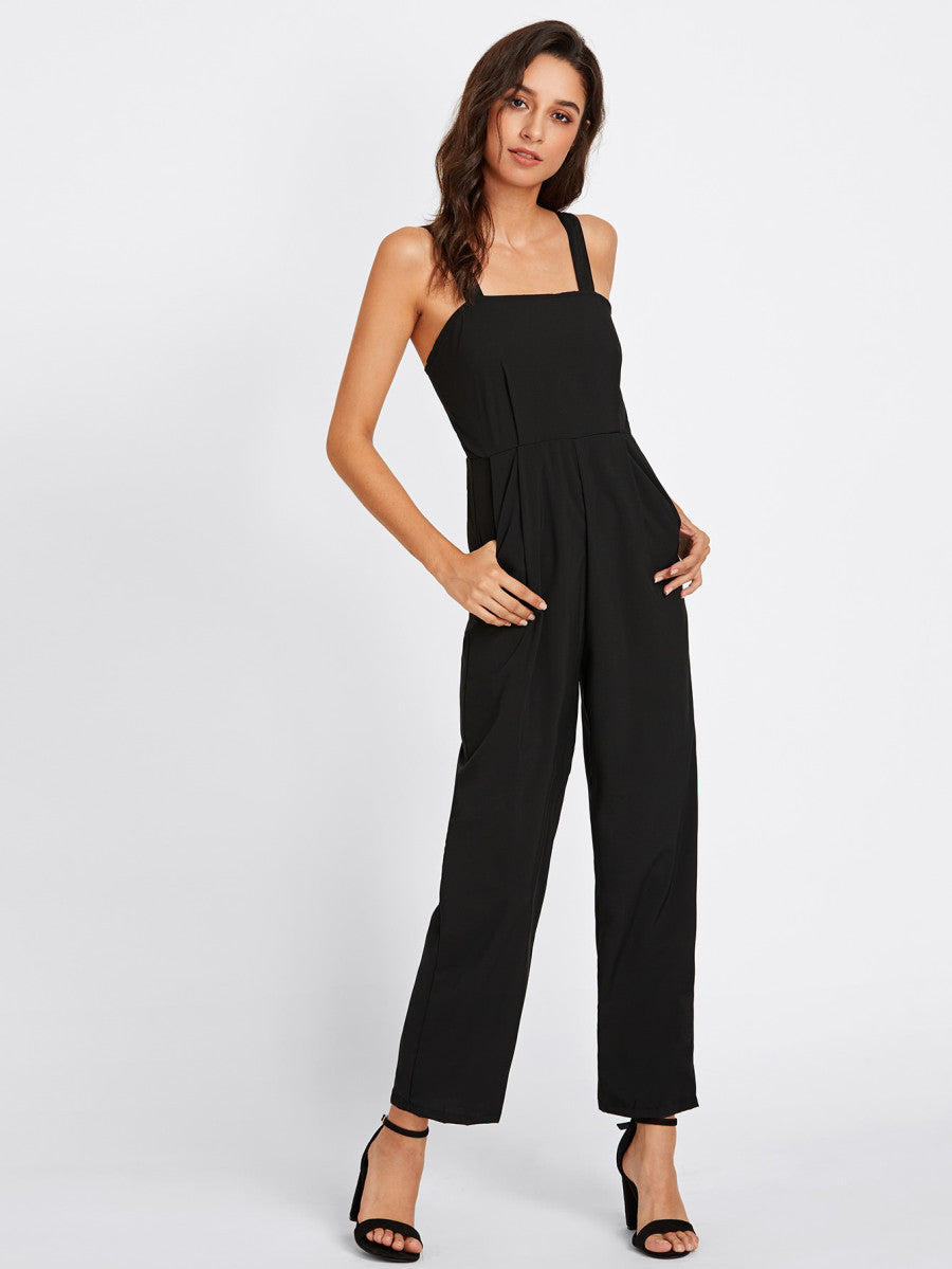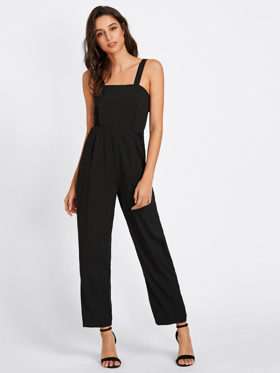 Adjustable Strap Button Back Jumpsuit
