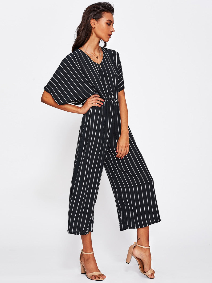 Vertical-Striped Wide Leg Jumpsuit