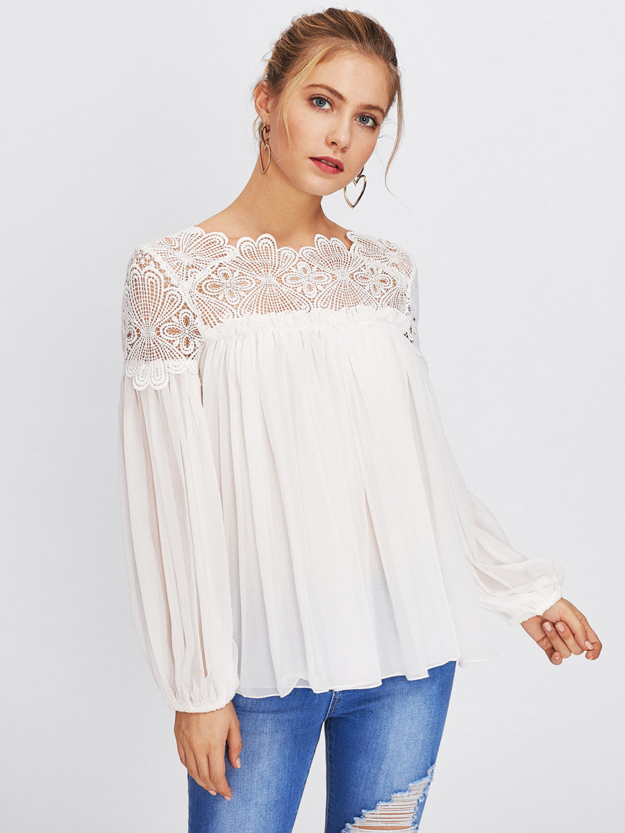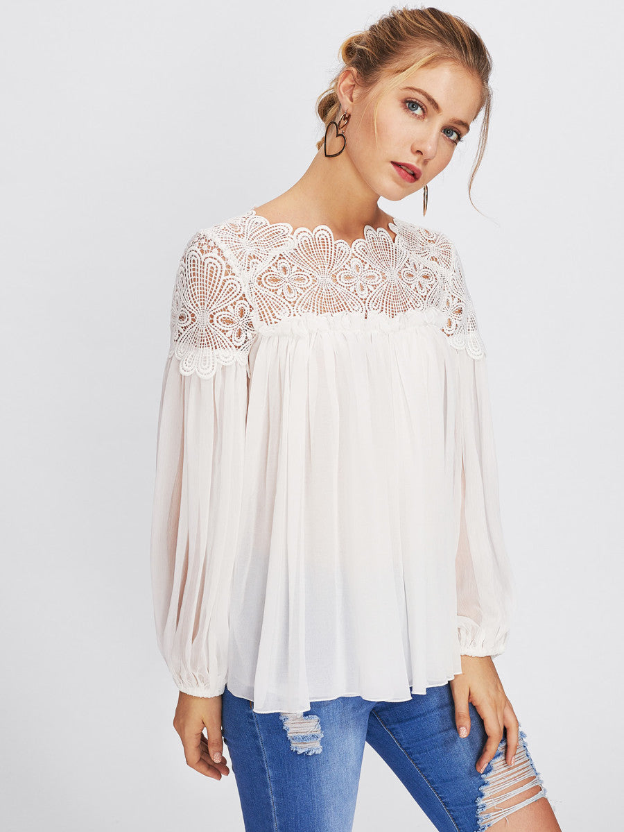 Lace Yoke Smock Top