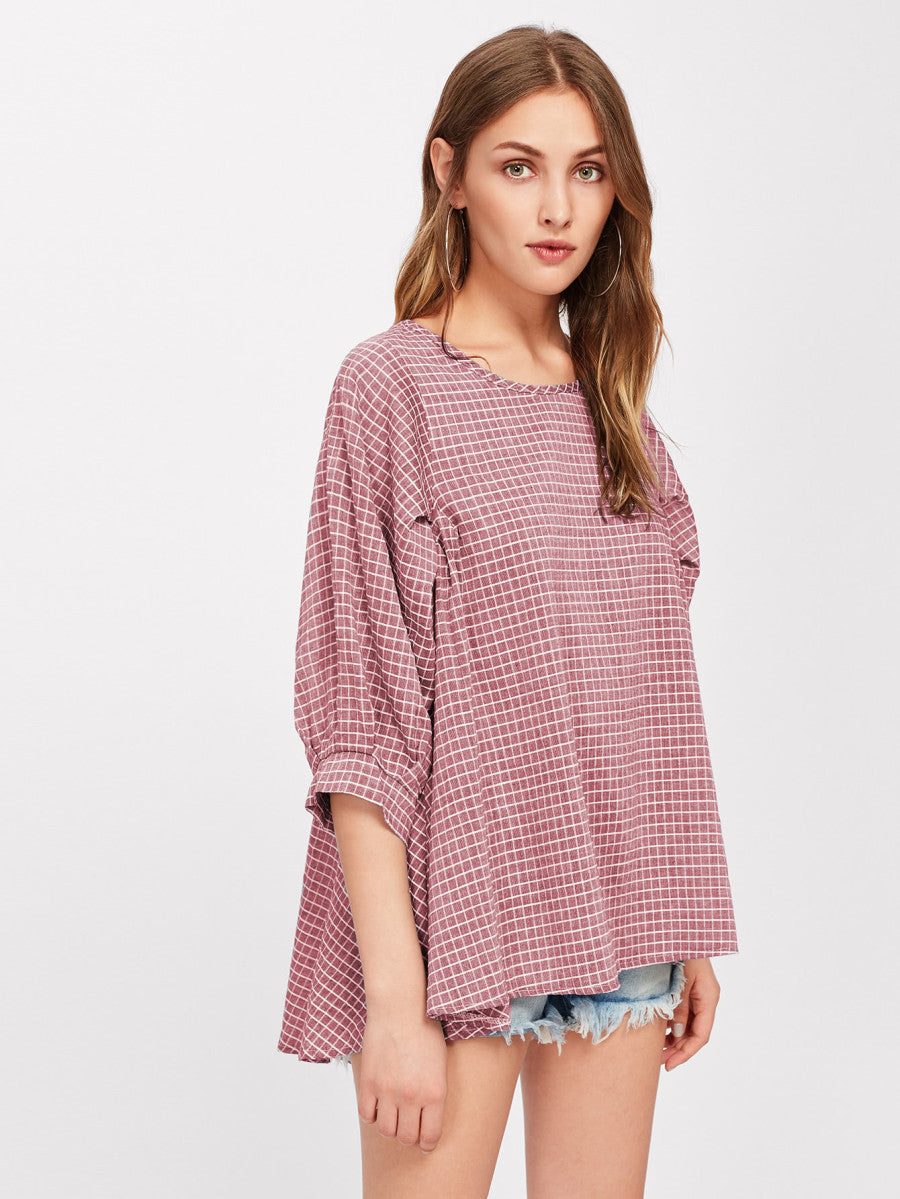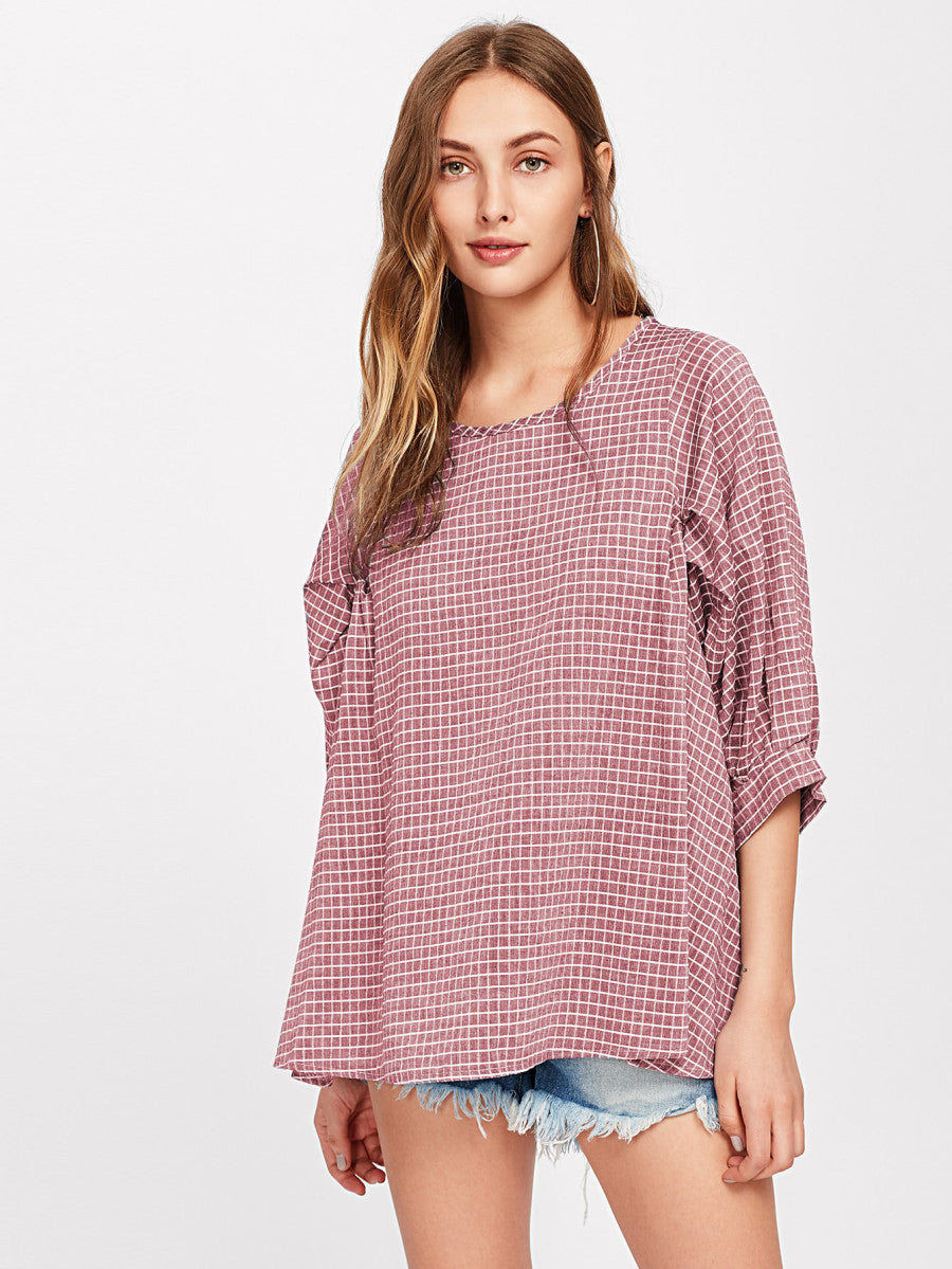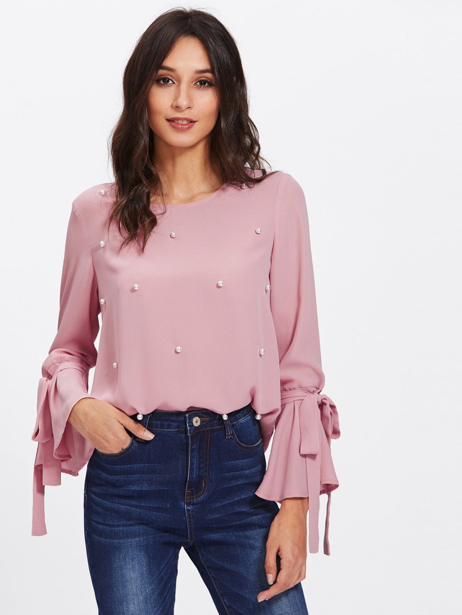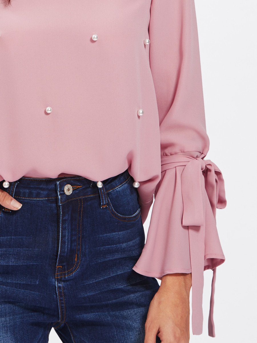 Frill Trim Bishop Sleeve Smocked Hem Blouse
